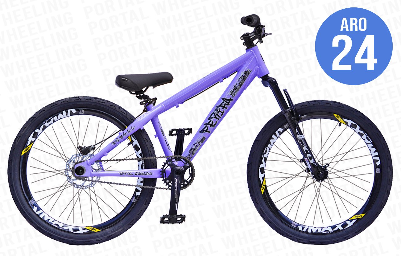 BICICLETA ARO 24 PORTAL WHEELING PERIFA 2.0 - 14,5" - LILÁS E PRETO COM FREIO HIDRAÚLICO SHIMANO