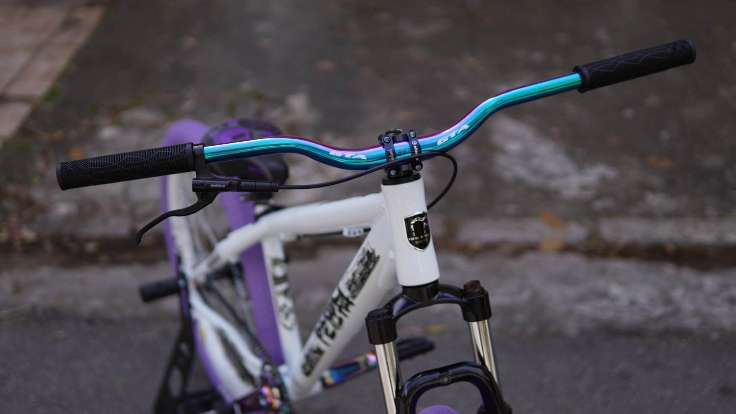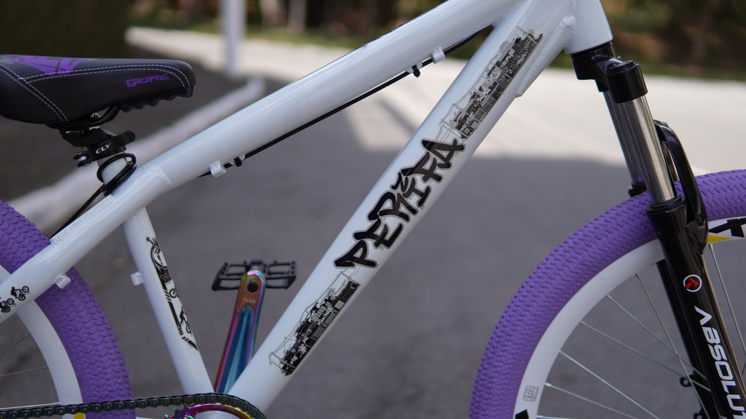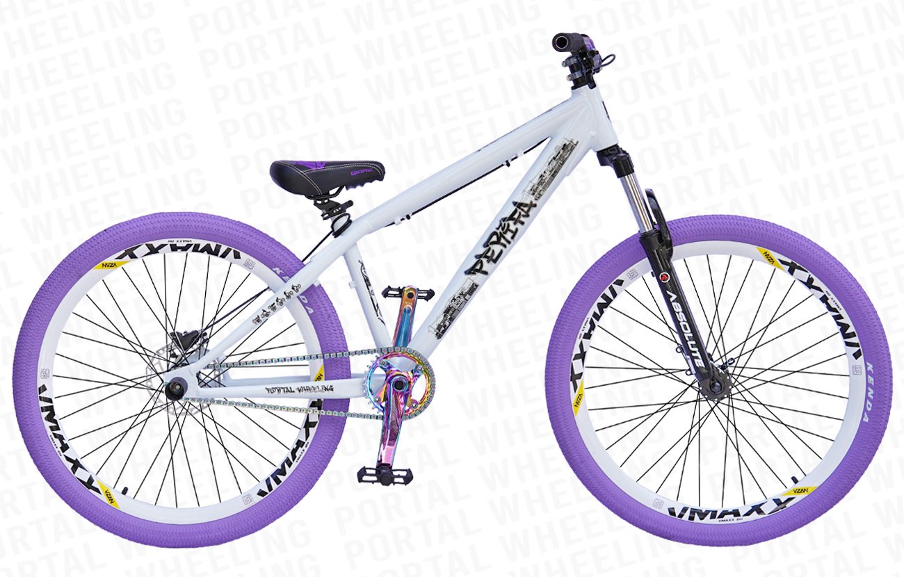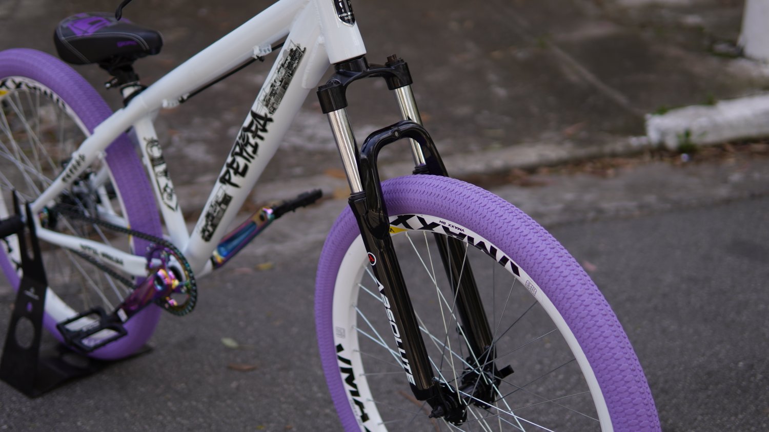 BICICLETA ARO 26" PORTAL WHEELING PERIFA 2.0 - 14,5" - BRANCA E ROXO COM FREIO HIDRAÚLICO SHIMANO