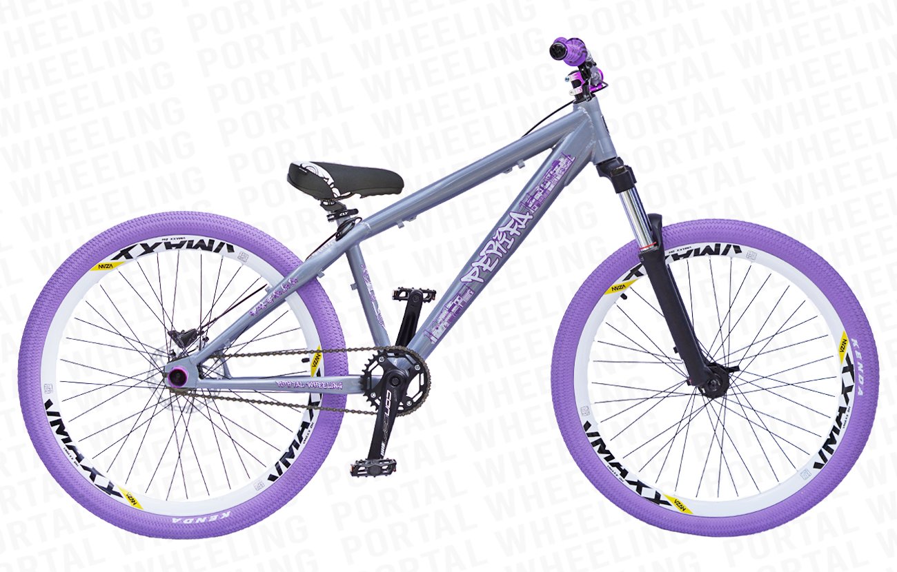 BICICLETA ARO 26 PORTAL WHEELING PERIFA 2.0 - 14,5" - PRATA, ROXO E BRANCO COM FREIO HIDRAÚLICO SHIMANO