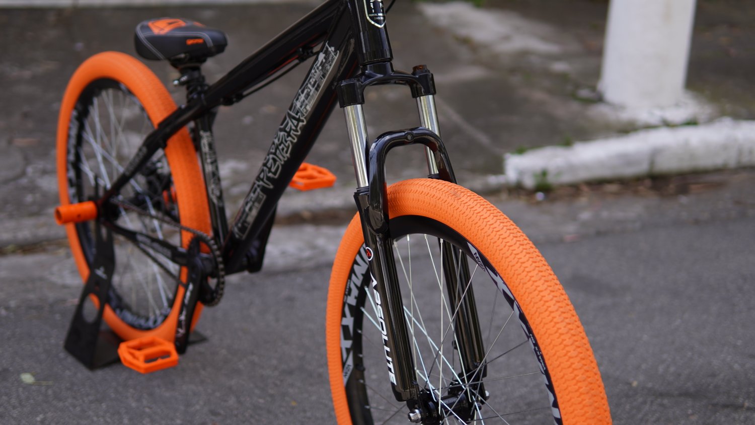 BICICLETA ARO 26" PORTAL WHEELING PERIFA 2.0 - 14,5" - PRETO E LARANJA COM FREIO HIDRAÚLICO SHIMANO