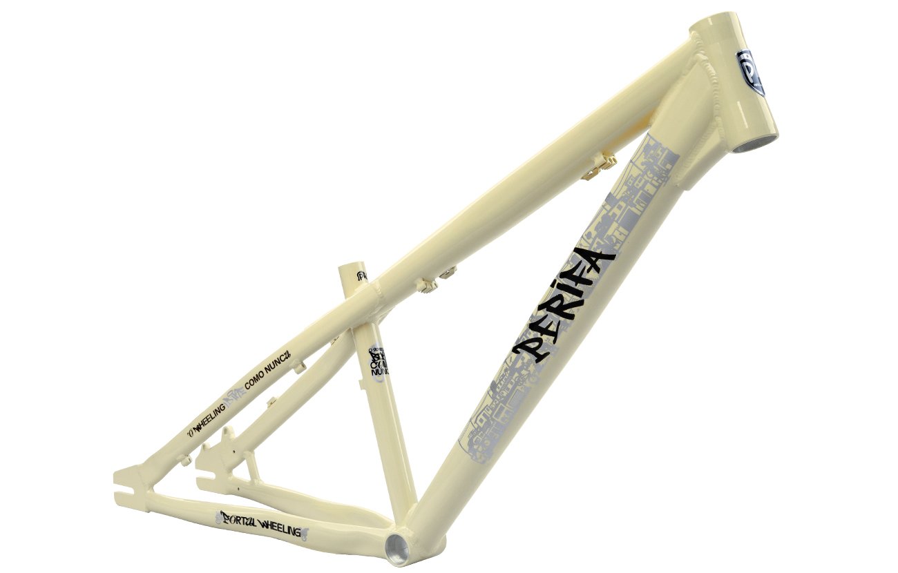 O design robusto e moderno do quadro PERIFA do Portal Wheeling é um destaque por si só. Sua aparência única certamente atrairá olhares de admiração, pois possui tubos largos, com curvas diferenciadas e adesivos que representam a modalidade Wheeling.