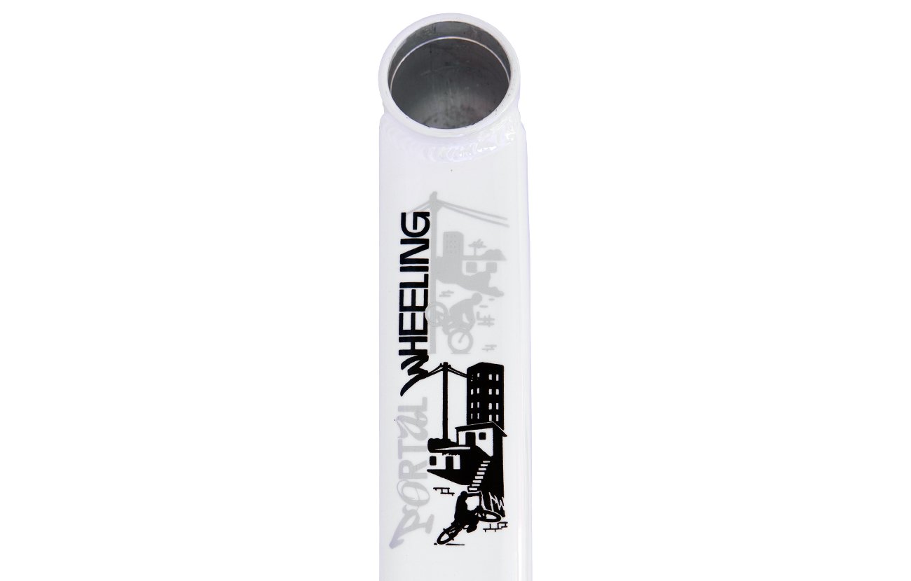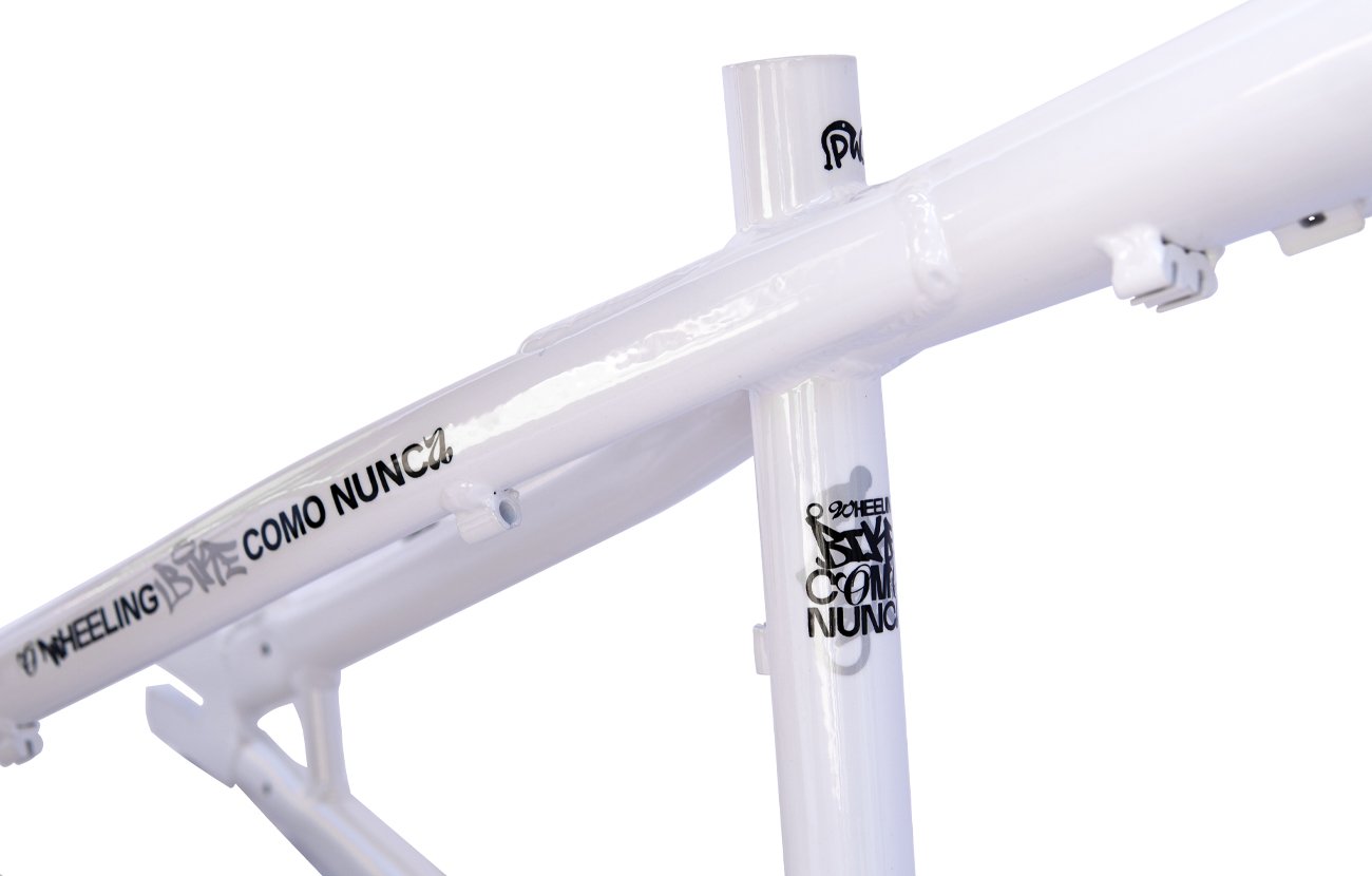 O design robusto e moderno do quadro PERIFA do Portal Wheeling é um destaque por si só. Sua aparência única certamente atrairá olhares de admiração, pois possui tubos largos, com curvas diferenciadas e adesivos que representam a modalidade Wheeling.
