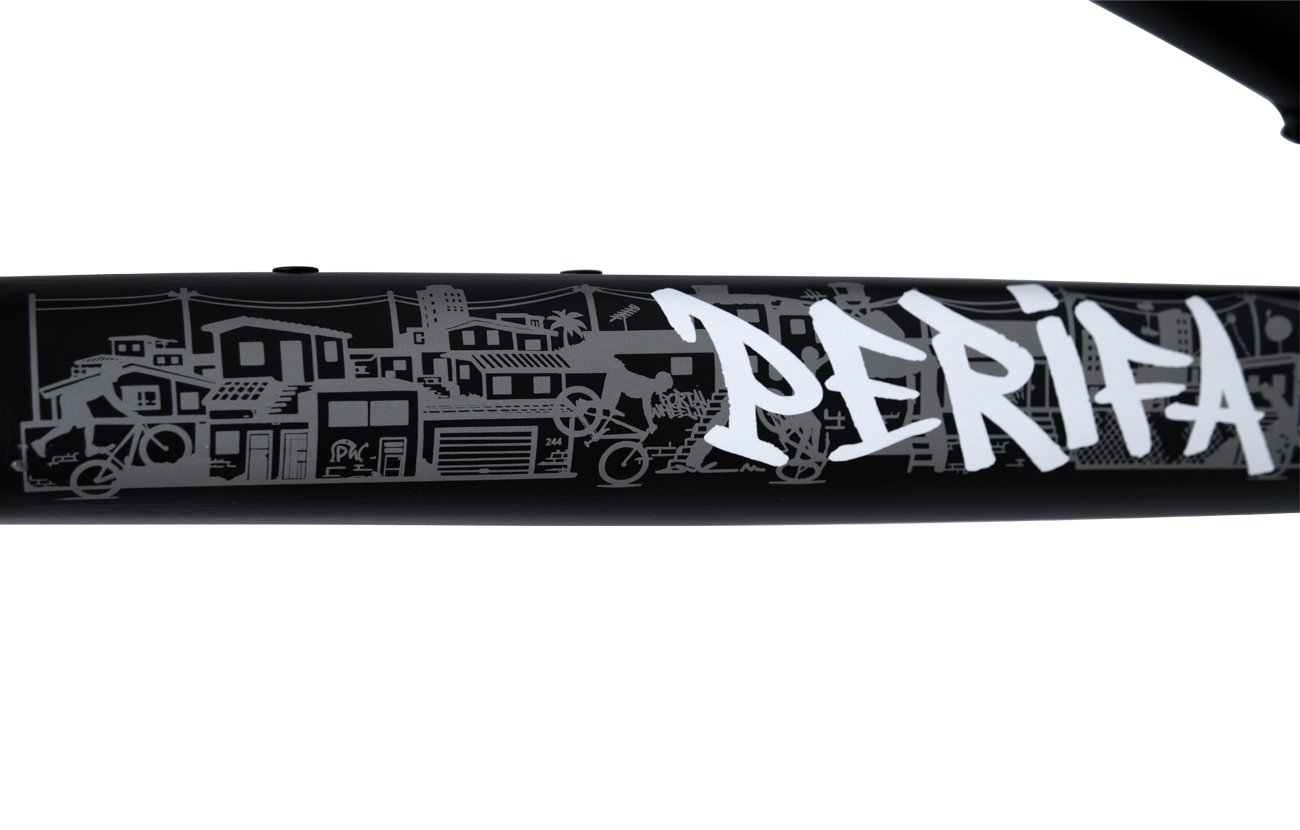 Fabricado em alumínio de alta qualidade e com tratamento térmico específico, o quadro PERIFA é leve e resistente, garantindo excelente durabilidade e agilidade durante as manobras. Para provar sua durabilidade, o quadro PERIFA