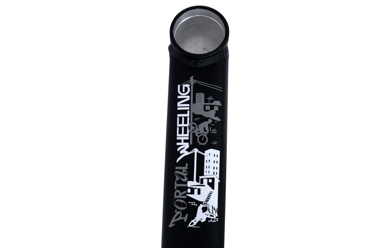 O design robusto e moderno do quadro PERIFA do Portal Wheeling é um destaque por si só. Sua aparência única certamente atrairá olhares de admiração, pois possui tubos largos, com curvas diferenciadas e adesivos que representam a modalidade Wheeling.