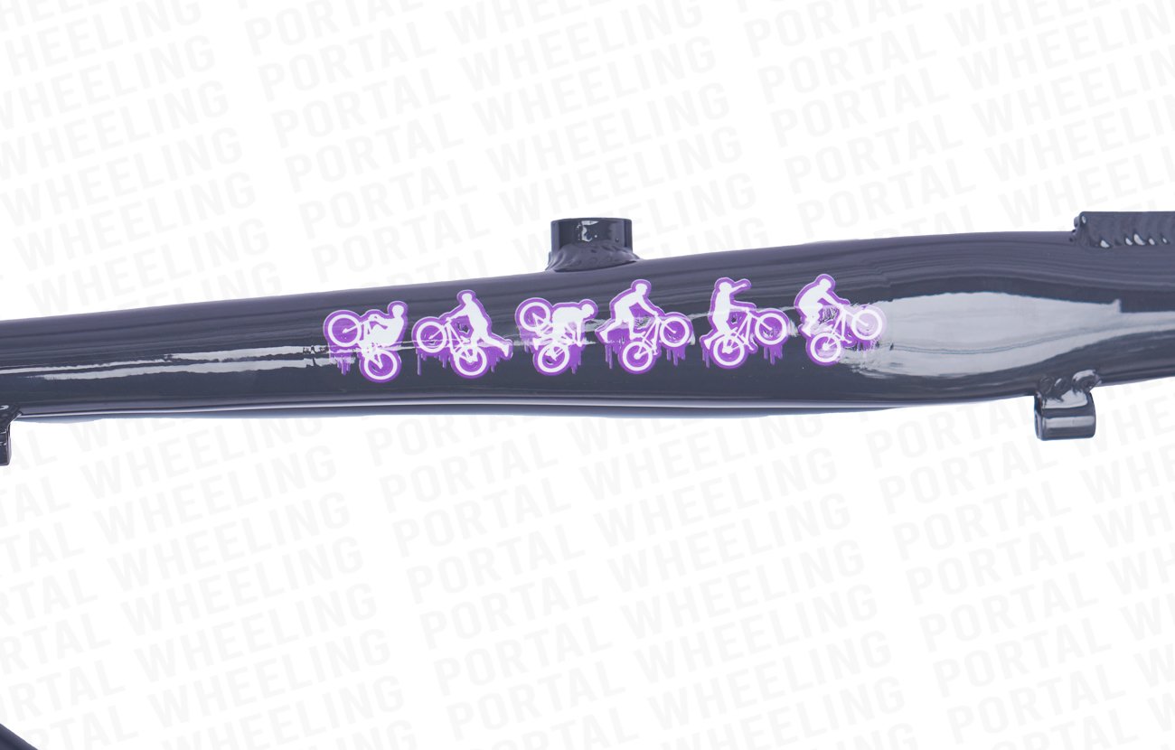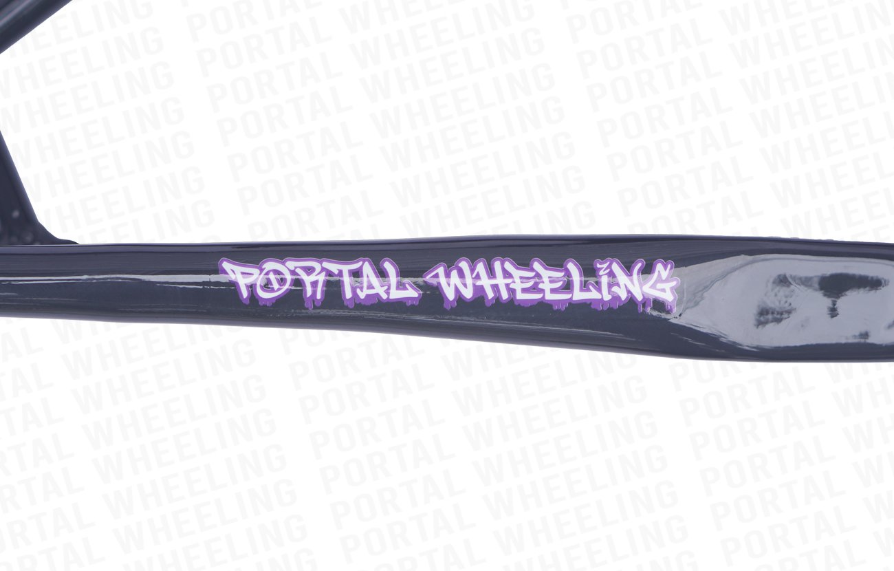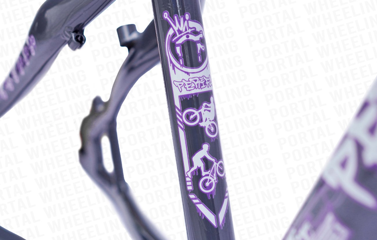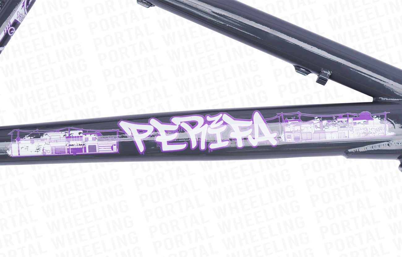 O design robusto e moderno do quadro PERIFA do Portal Wheeling é um destaque por si só. Sua aparência única certamente atrairá olhares de admiração, pois possui tubos largos, com curvas diferenciadas e adesivos que representam a modalidade Wheeling.