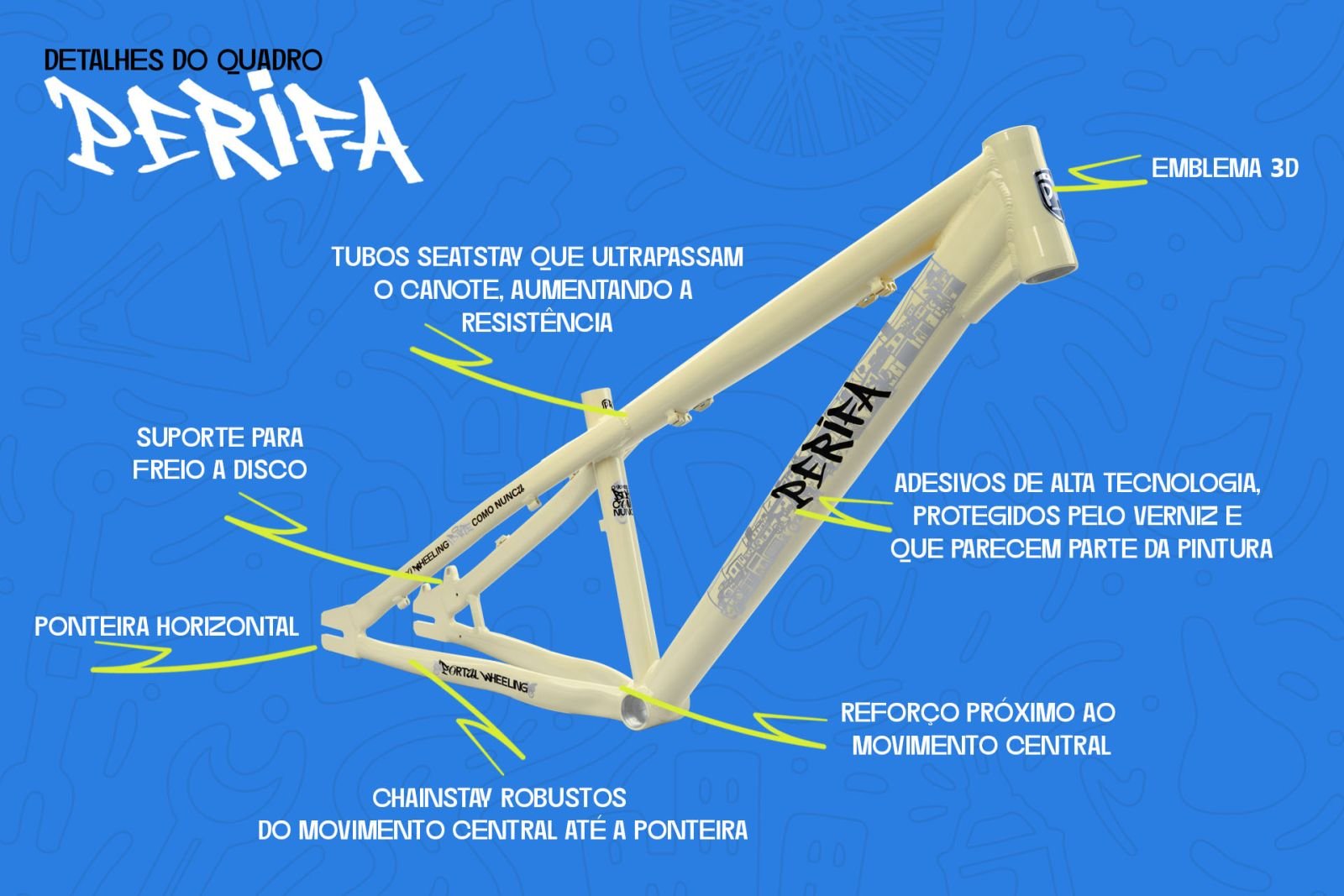 O quadro PERIFA é construído para resistir a impactos e desafios nas manobras, tornando-o uma opção confiável para a prática do Wheeling, que exige muita resistência do quadro. Diversas marcas oferecem apenas três meses de garantia no quadro,